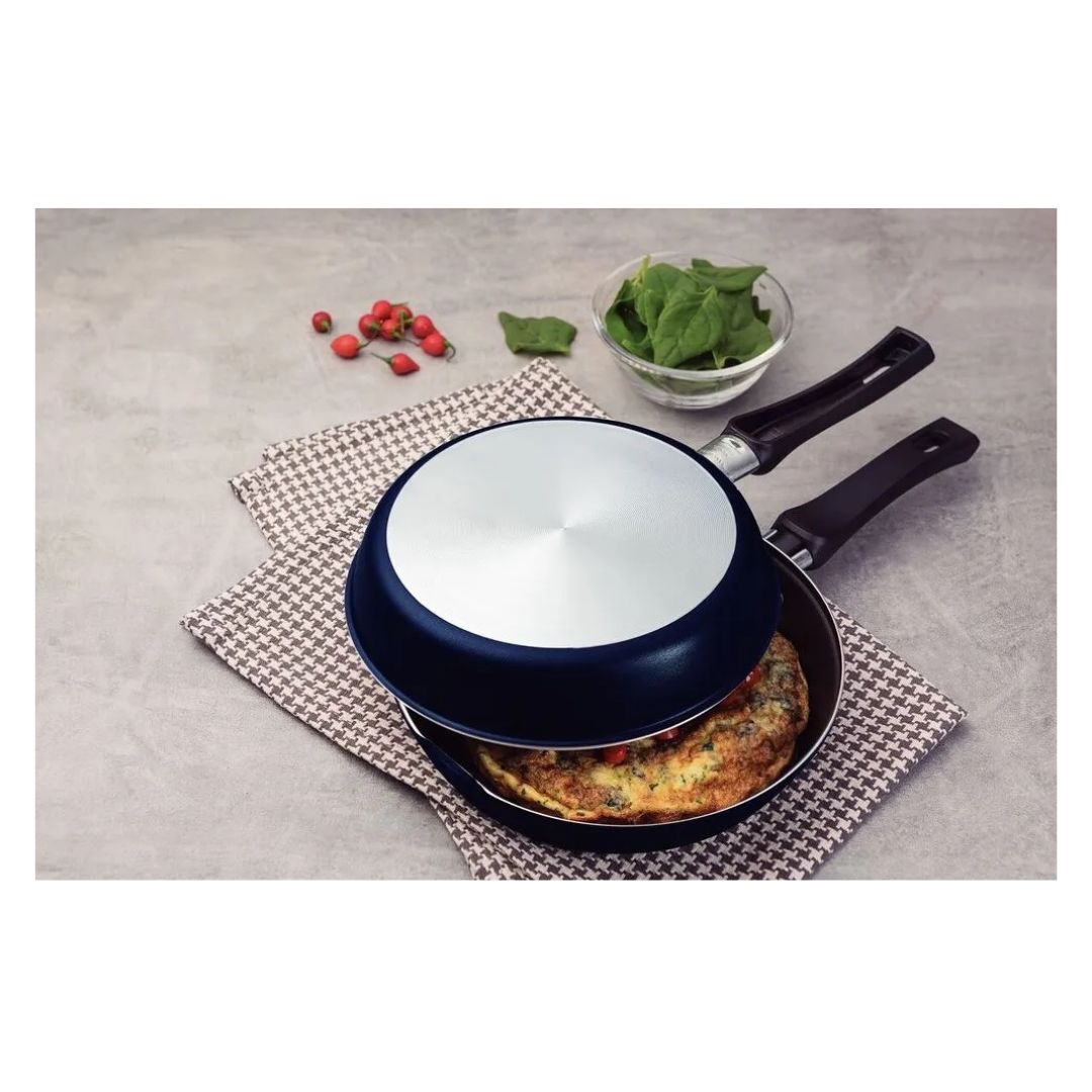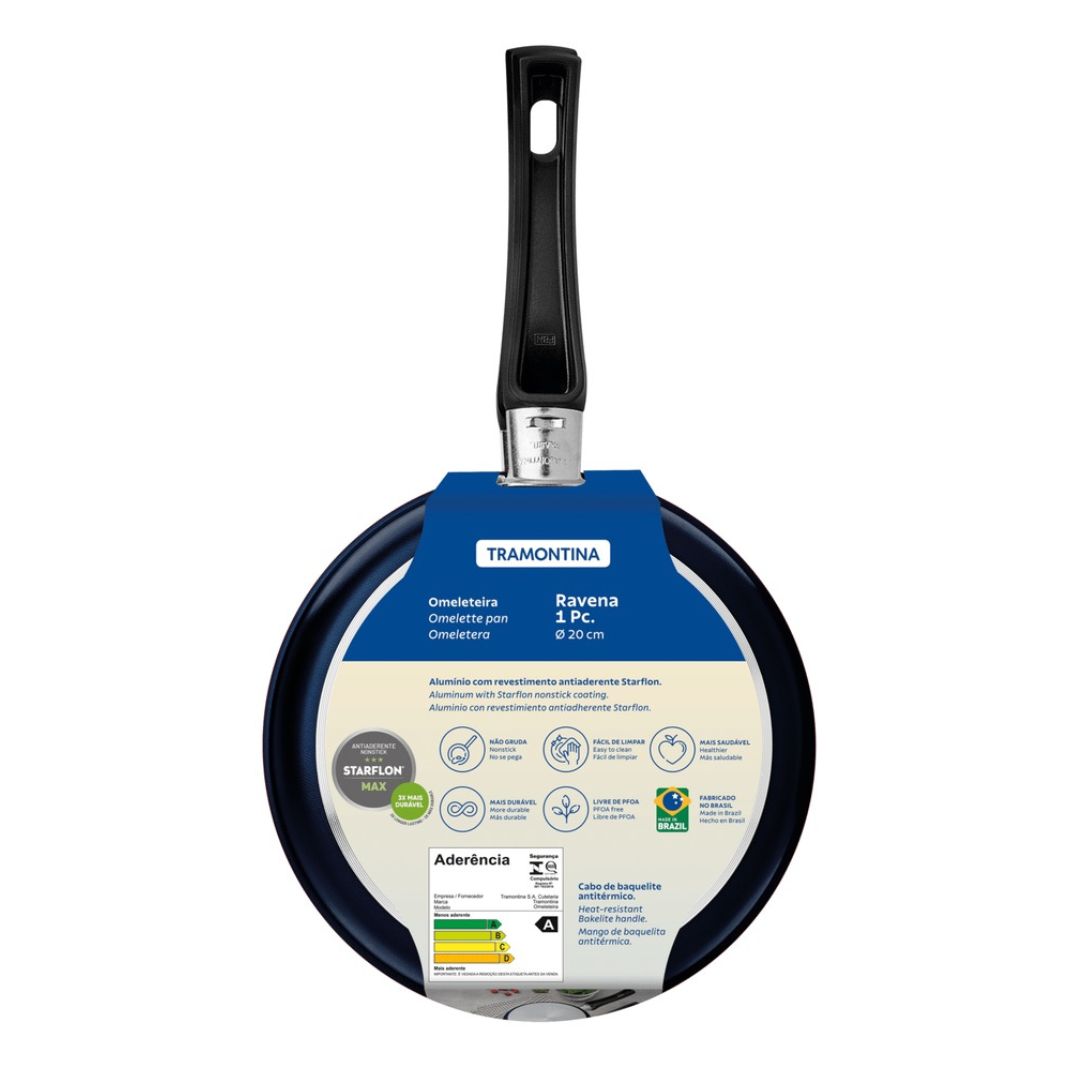 Preparar un omelette rico y cremoso para su desayuno ahora es mucho más práctico con la omeletera Tramontina Ravena, de 20 centímetros de diámetro. Desarrollada para el uso diario, está producida en aluminio con revestimiento interno y externo de Starflon Max, un antiadherente que no deja que se peguen los alimentos, más durable y no es perjudicial a la salud.