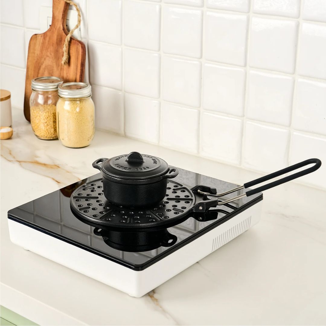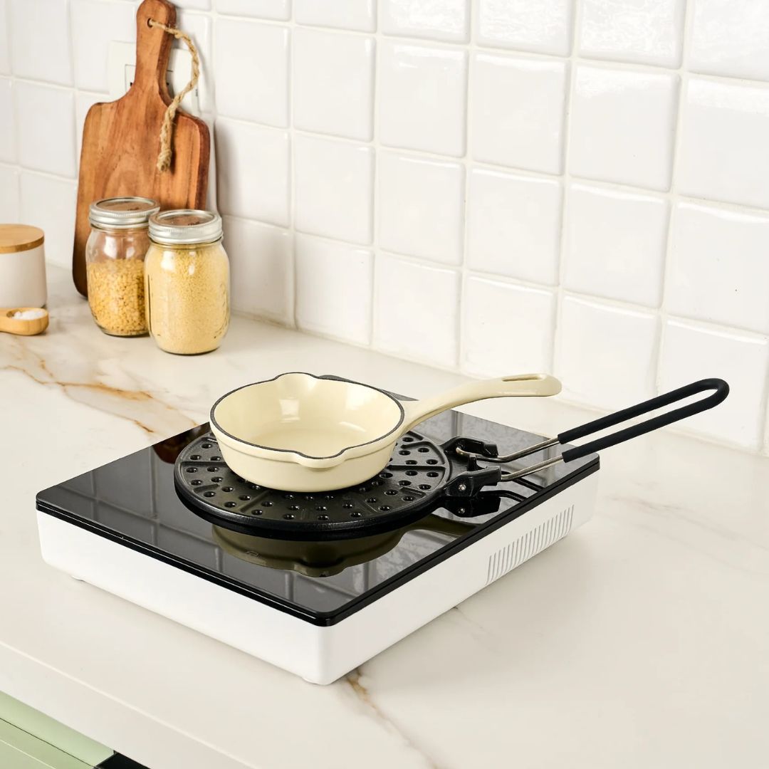 La parrilla para arepas Victoria, una pieza imprescindible en tu cocina que fusiona la tradición del hierro fundido con innovación y diseño práctico. Ideal para preparar arepas, tortillas, panes artesanales, verduras tatemadas con un sabor inigualable o incluso como difusor de calor